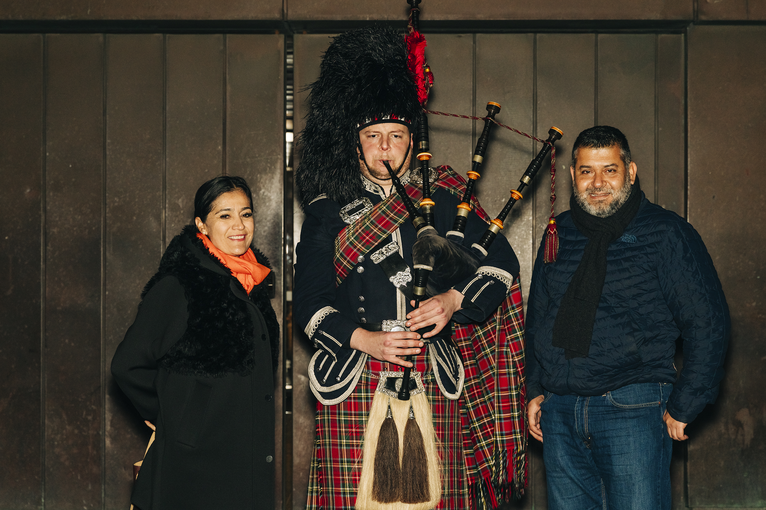 La serata inizia con il suggestivo suono di una cornamusa scozzese, accompagnato da un servizio fotografico per immortalare momenti indimenticabili.