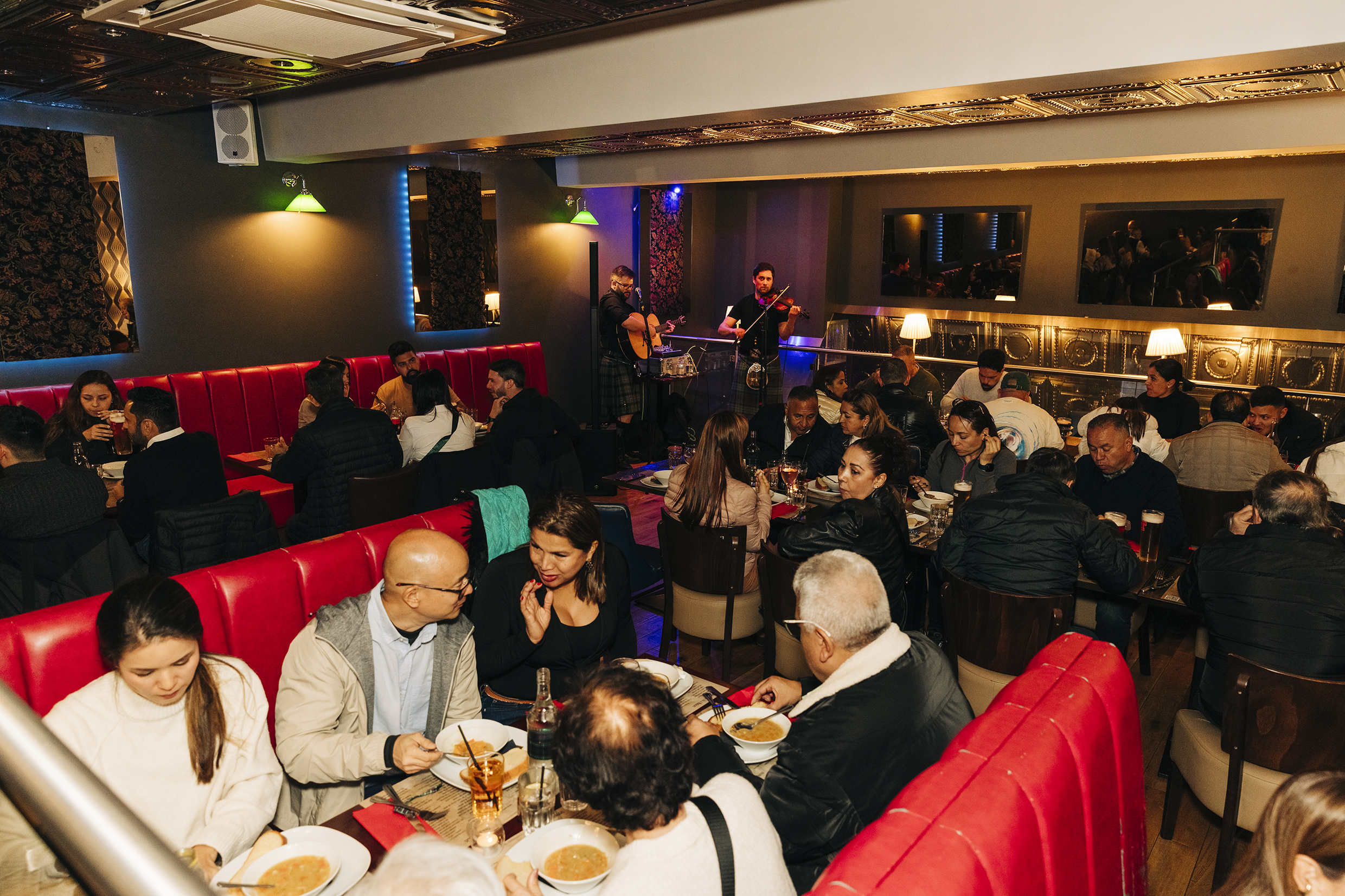 Durante la cena, due musicisti guidano il pubblico in un affascinante viaggio attraverso la musica folk scozzese, dalle ballate melodiche alle vivaci canzoni tradizionali, raccontando le storie che le accompagnano.